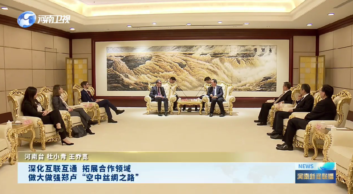 孫守剛代表省政府對盧睿朗一行來豫參加鄭州—盧森堡客運航線首航儀式表示歡迎。他說,今年是鄭州—盧森堡“空中絲綢之路”建設(shè)十周年,十年來,在兩國元首的重視指引下,鄭盧“空中絲綢之路”成為共建“一帶一路”標(biāo)志性項目。希望雙方以鄭州—盧森堡客運航線開通為契機,進(jìn)一步深化互聯(lián)互通,實現(xiàn)更高水平共同發(fā)展和互利共贏。