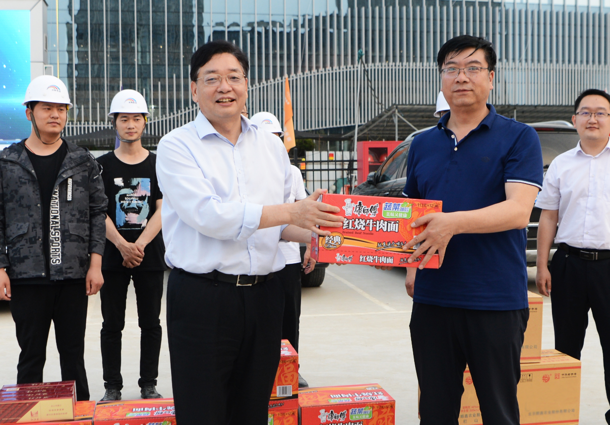 5月20日下午,河南航投黨委書記、董事長張明超和總經理、黨委副書記、副董事長劉建葆等公司領導來到BAA(中國)航空培訓中心建設工地,深入了解項目進展情況,指導建設工作,看望慰問奮戰在一線的干部員工,為大家加油鼓勁。
